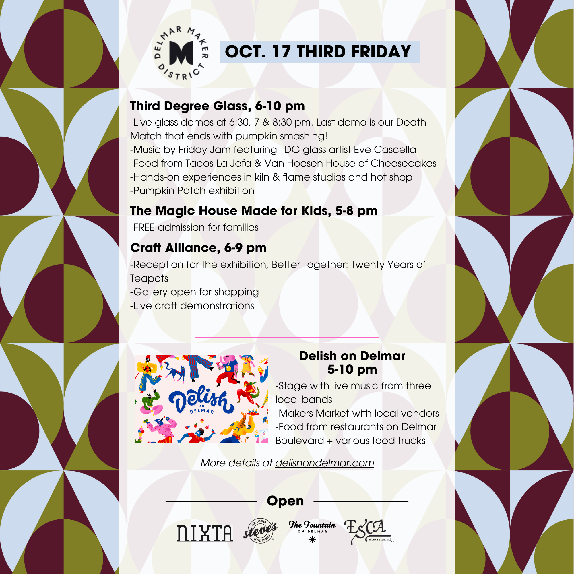 On the third Friday evening of every month, the organizations in the DMD host special experiences and demonstrations for the community, and district restaurants are open for a variety of food and drink options. The events are family friendly or a great date night.